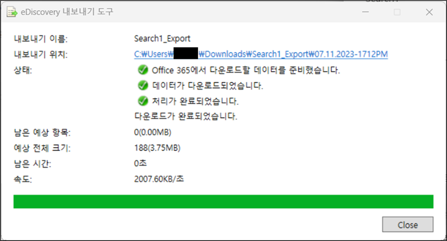 다운로드가 완료되면 Close 를 클릭합니다.