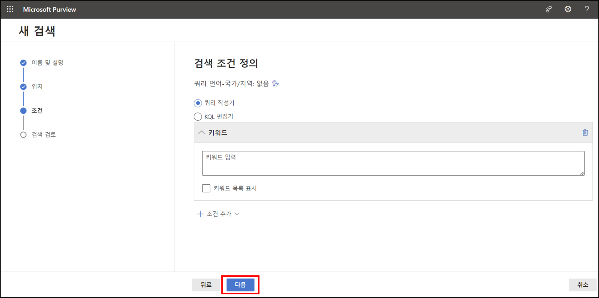 전체 검색을 위해 초기 상태로 두고 바로 다음을 클릭합니다.