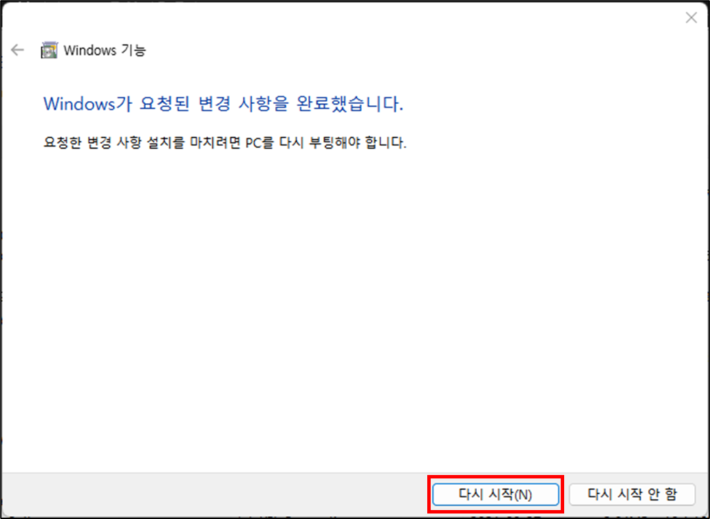 다시 시작을 클릭합니다.